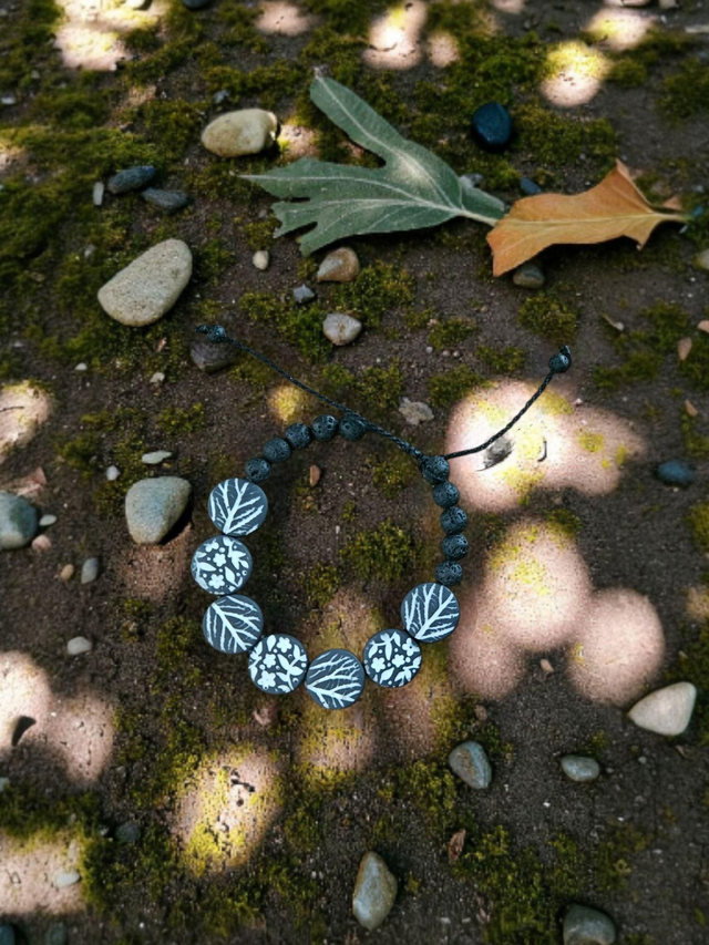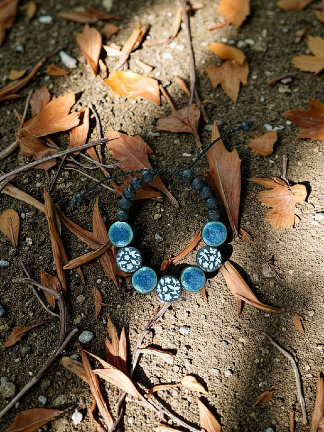 Bracelet monté sur un fil avec nœud coulissant pour s'adapter à tous les poignets.